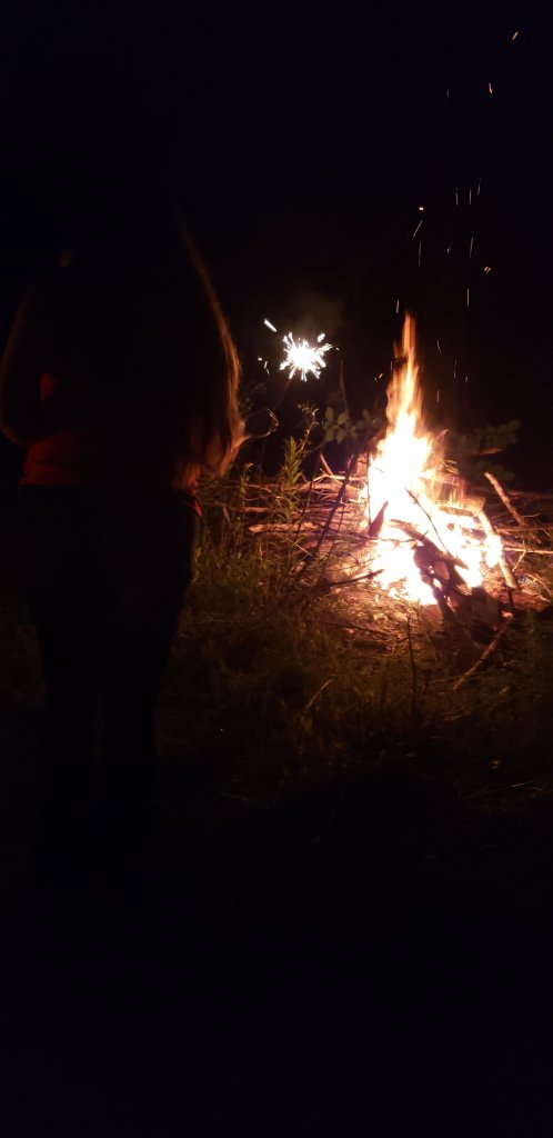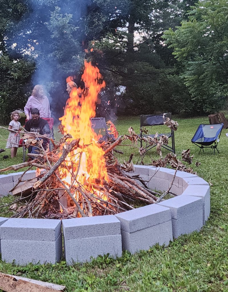Seriously, if you represent all five elements and invite everyone you can think of everything usually shakes down just fine. The people who are supposed to attend–do. Pods and subtribes form: political gossip around the buffet, the fire worshippers tend the fire, wreathed in long shadows, and quests– to visit the spring house, to peer inside the old school bus windows, to look for ripe blackberries– keep the energies stirring. In case you need ideas: